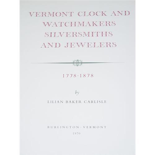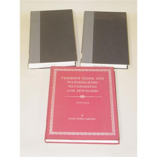 ANTIQUE REFERENCE. A Group of 3 Volumes as Listed. 4to - over 9¾" - 12" tall. Hard Cover. Ex-Library. In Very Good ++ Condition. ***Vermont Clock and Watchmakers, Silversmiths and Jewelers 1778-1878 by Lilian Baker Carlisle (1970) Burlington, VT: Self Published. LIMITED EDITION #326/1000. xi, 313pp on glossy paper, in original cloth binding, with binding & hinges tight. Illustrated. ***American Silver 1655-1825 in the Museum of Fine Arts, Boston - 2 Volumes by Kathryn C. Buhler (1972) Greenwich, CT: New York Graphic Society. Illustrated throughout, binding & hinges tight