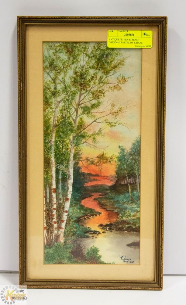 SIGNED LOIS LOUISE HARLOW, FRAME SIZE 8.75 X 16 INCHES, STAMPED EATONS ON VERSO