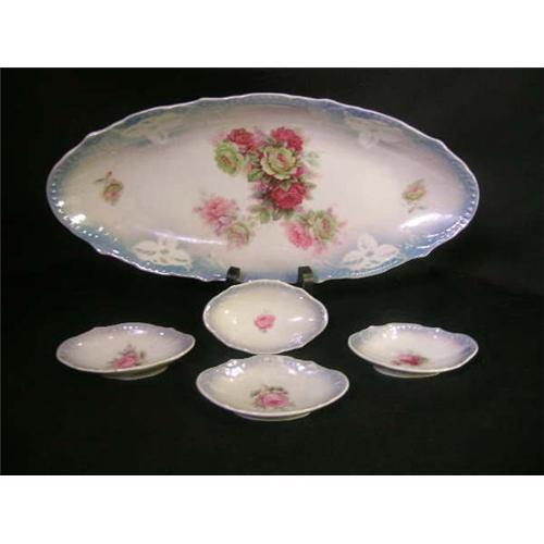 <tr><td>Title:ANTIQUE ROSES LUSTRE CELERY BOWL SET</td></tr>