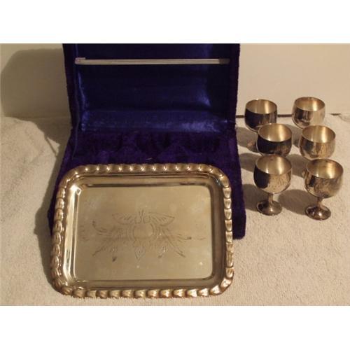 ANTIQUE RUSSIAN SILVER (PLATE?) SET OF CUPS&TRAY IN BOX