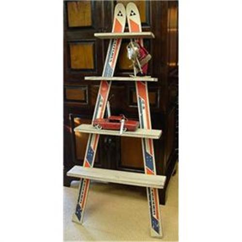 OUR OWN HAND DESIGNED ANTIQUE RUSTIC CABIN SKI BOOKCASE SHELVES CAN BE BEAT, FABULOUS FOR YOUR LODGE OR CABIN OR THE SKI COLLECTOR. CAN BE MOUNTED OT JUST LEAN AGAINST THE WALL FOR EASY MOVING, GREAT FOR KIDS ROOM OR DAD WILL LOVE IT!'