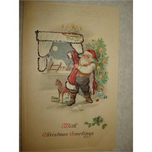 Beautiful antique postcard featuring a classic old Father Christmas, St Nick, Santa Claus embossed and decorated with original aged glitter! The postcard is in very nice condition, never used or mailed . A lovely addition to your Christmas collection or Santa Claus postcard collection. Please note the white area is reflection from the flash.