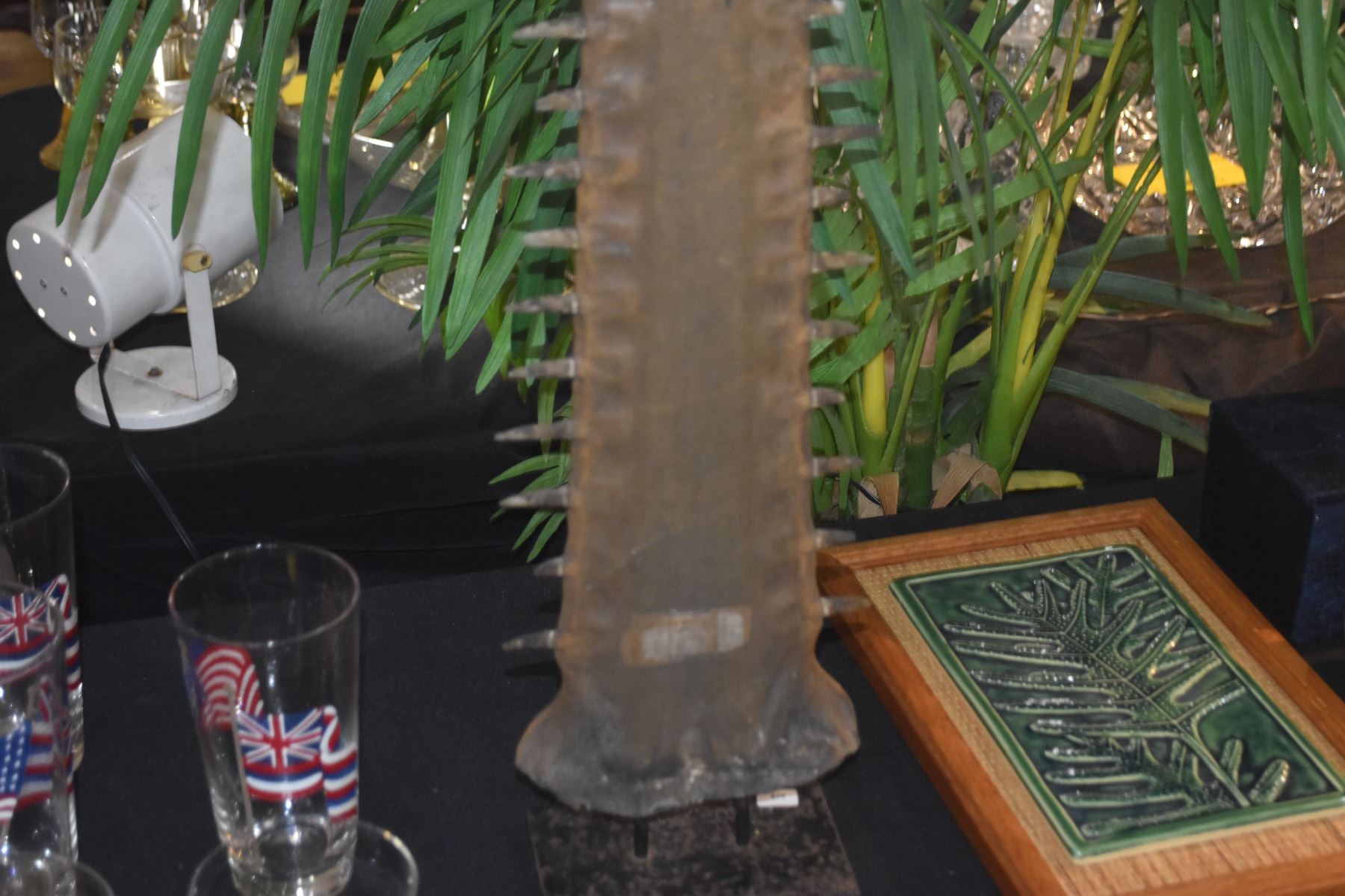 ANTIQUE SAWFISH ROSTRUM ON METAL BASE