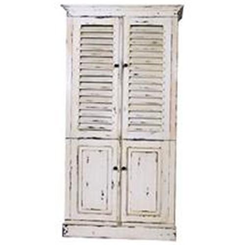 THIS SOLID HARDWOOD WHITE WASHED SHABBY SHUTTER ARMOIRE LINEN CABINET CANNOT BE BEAT!