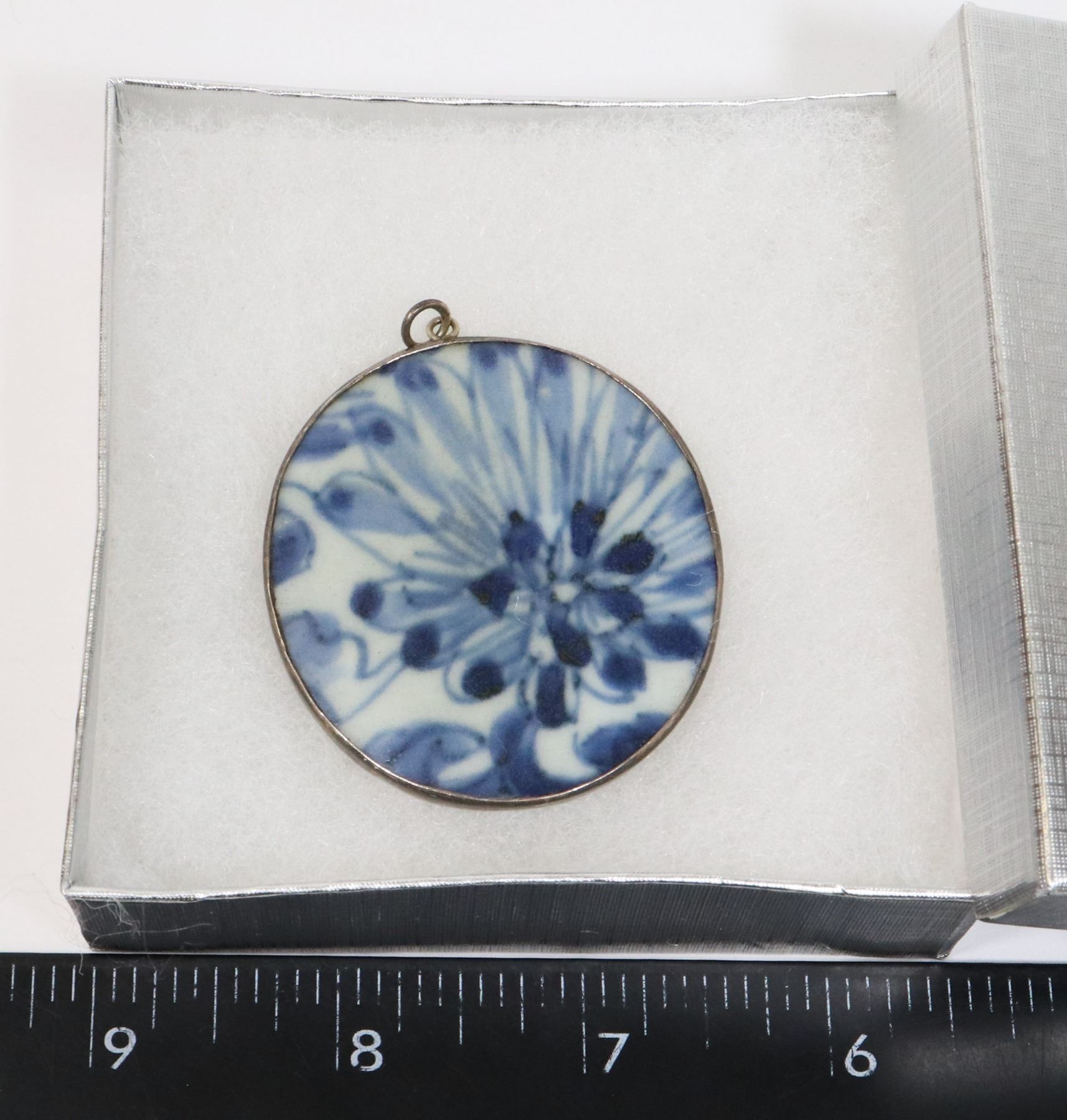 ANTIQUE SILVER ABD CHINESE PORCELAIN PENDANT