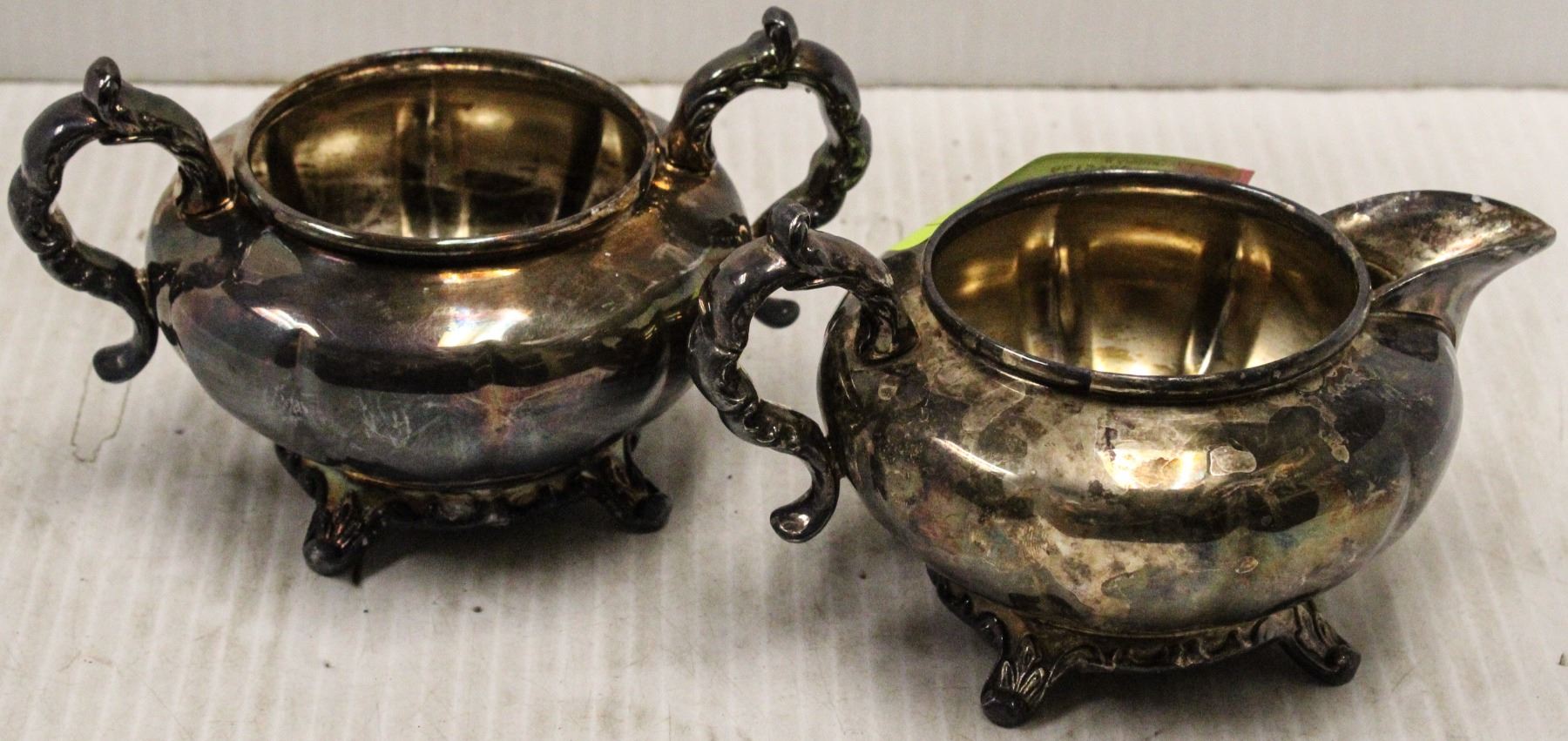 ANTIQUE SILVER PLATE CREAM AND SUGAR SET