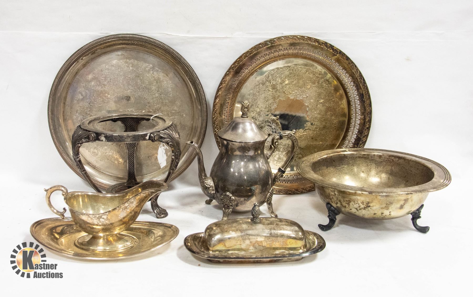 ANTIQUE SILVER-PLATED BOWLS AND TEA SET