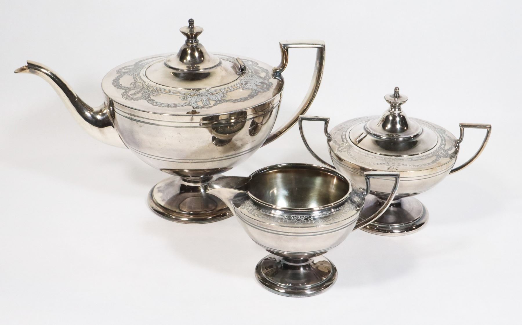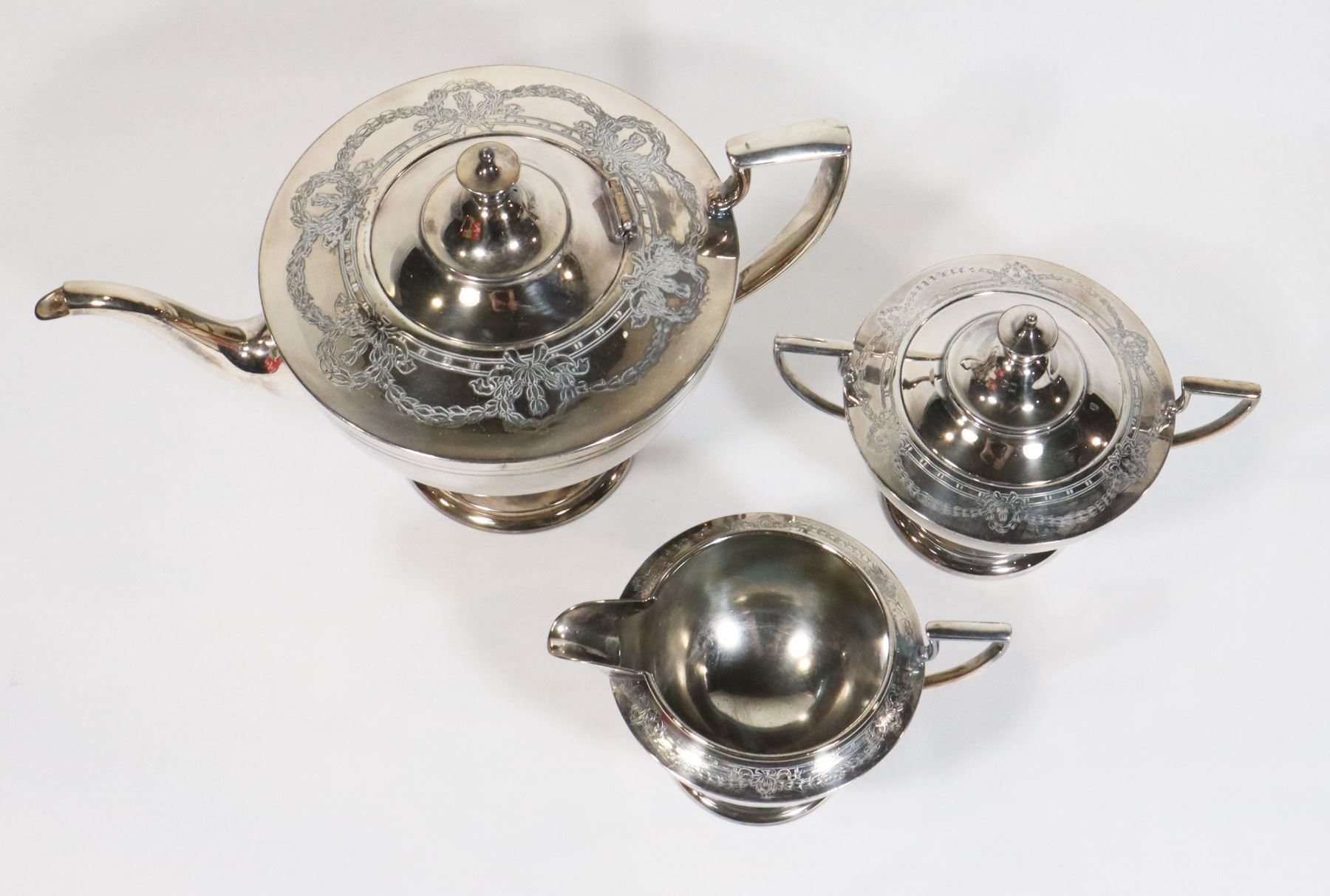 ANTIQUE SILVER TEA SET (MARKINGS ON BOTTOM, PLEASE