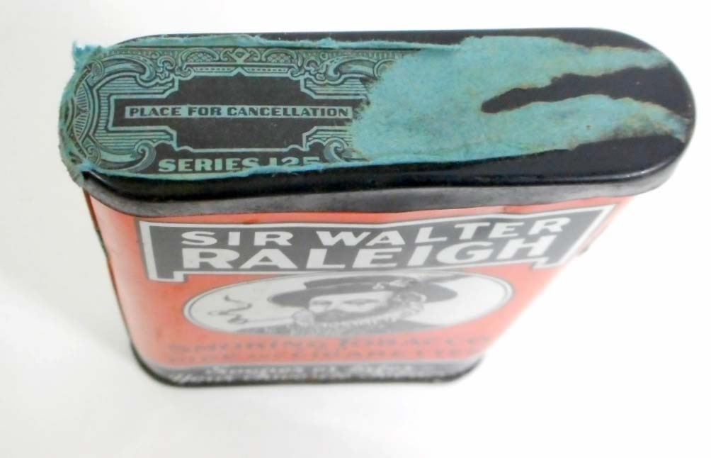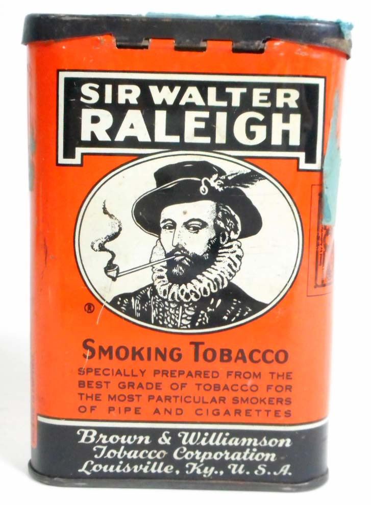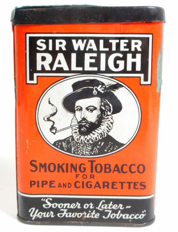 ANTIQUE SIR WALTER RALEIGH SMOKING TOBACCO ADVERTISING POCKET TIN