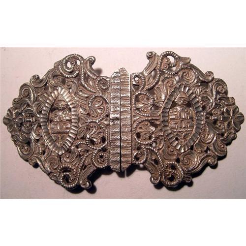 FINE EAST INDIAN SILVER BUCKLE. 43.9g OR 31.7dwt = 1.59 TROY OZ.