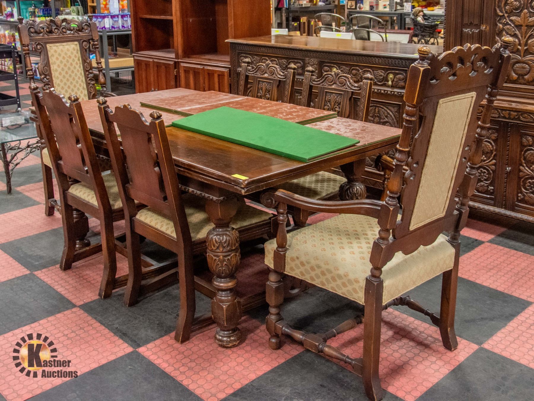 OUT LEAFS, 4 CHAIRS AND 2 HIGH BACK END CHAIRS. 70" X 39" X 30" WITHOUT LEAFS **ALL ITEMS MUST BE REMOVED BY 5PM SATURDAY, DECEMBER 16TH 2023. ALL REMAINING ITEMS WILL BE SUBJECT TO A $6.00 PER DAY STORAGE CHARGE. ANY ITEMS REMAINING AFTER TUESDAY, JANUARY 2ND 2023 WILL BE CONSIDERED FORFEITED. NO REFUNDS WILL BE ISSUED FOR FORFEITED ITEMS. TO SCHEDULE A PICK UP APPOINTMENT CLICK HERE