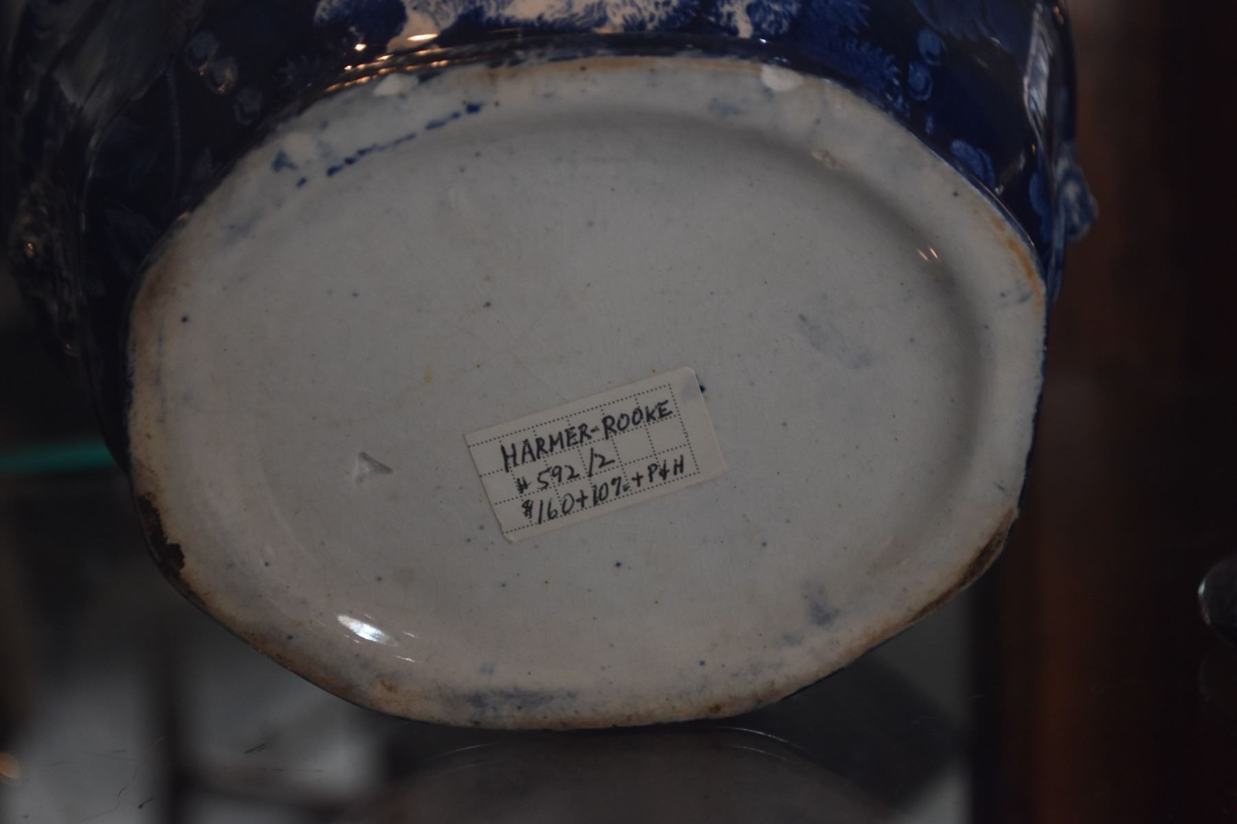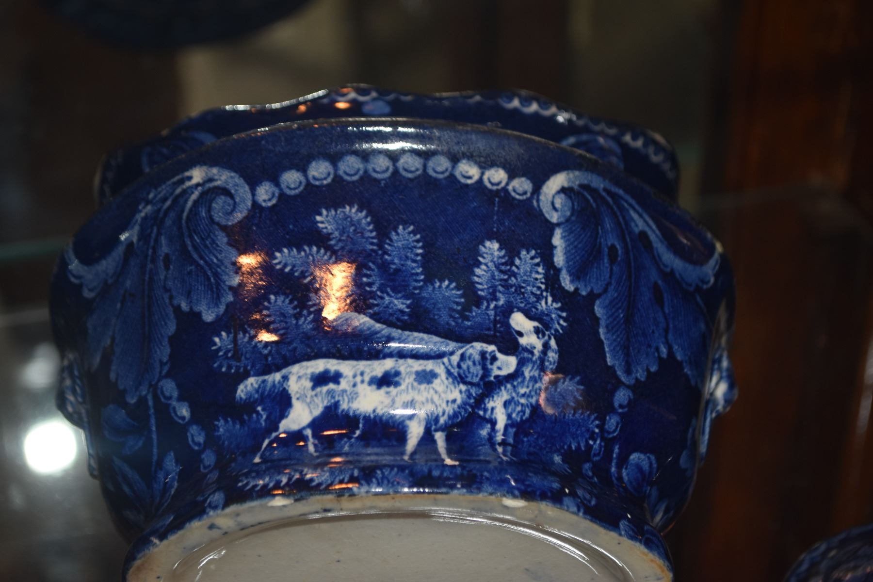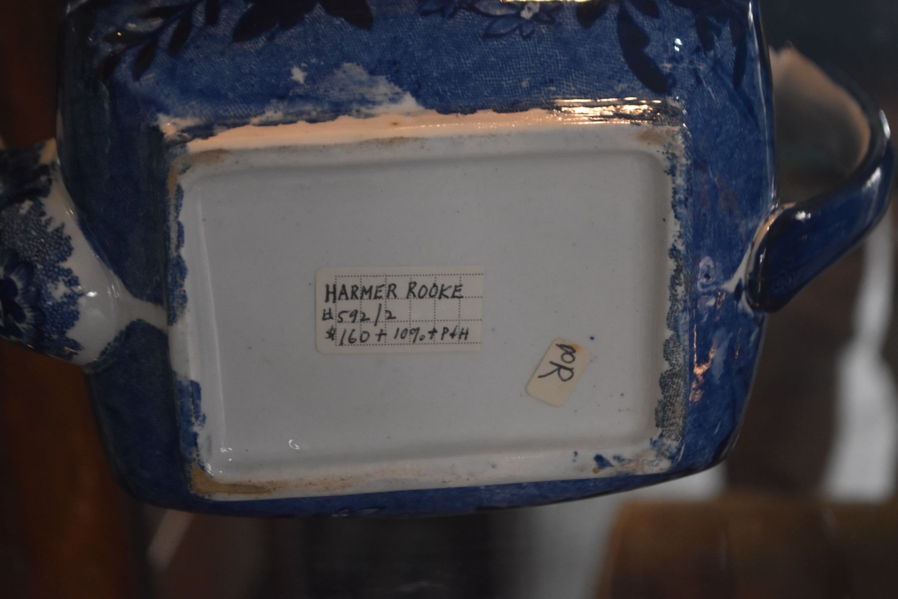 ANTIQUE STAFFORDSHIRE BLUE & WHITE TRANSFERWARE TEAPOT & COVERED SUGAR BOWL (2 PCS)