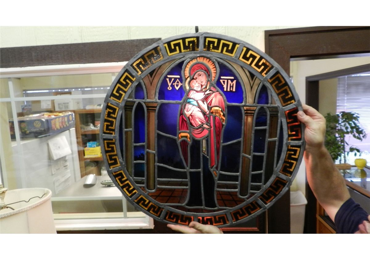 ANTIQUE STAINED GLASS CHURCH WINDOW ROUND
