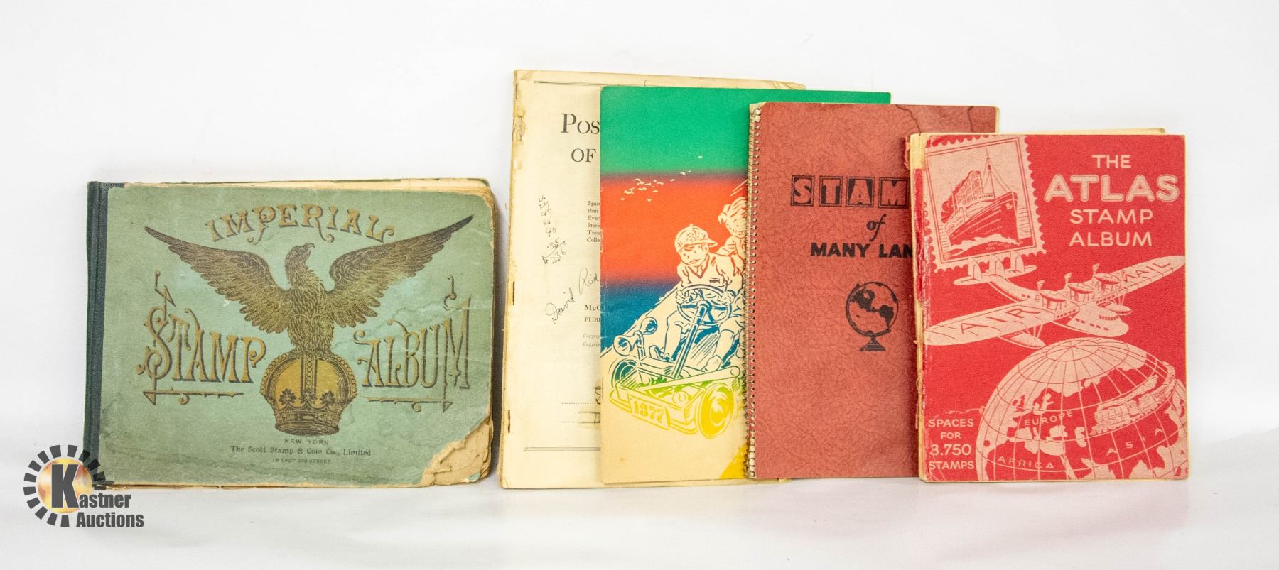 ANTIQUE STAMP ALBUMS W/STAMPS- LOT OF 5 ASST.