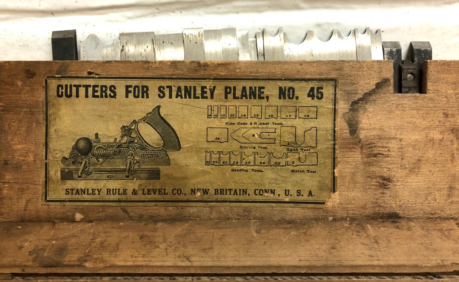 ANTIQUE STANLEY NO 45 PLANE WITH COMPLETE BLADE SET