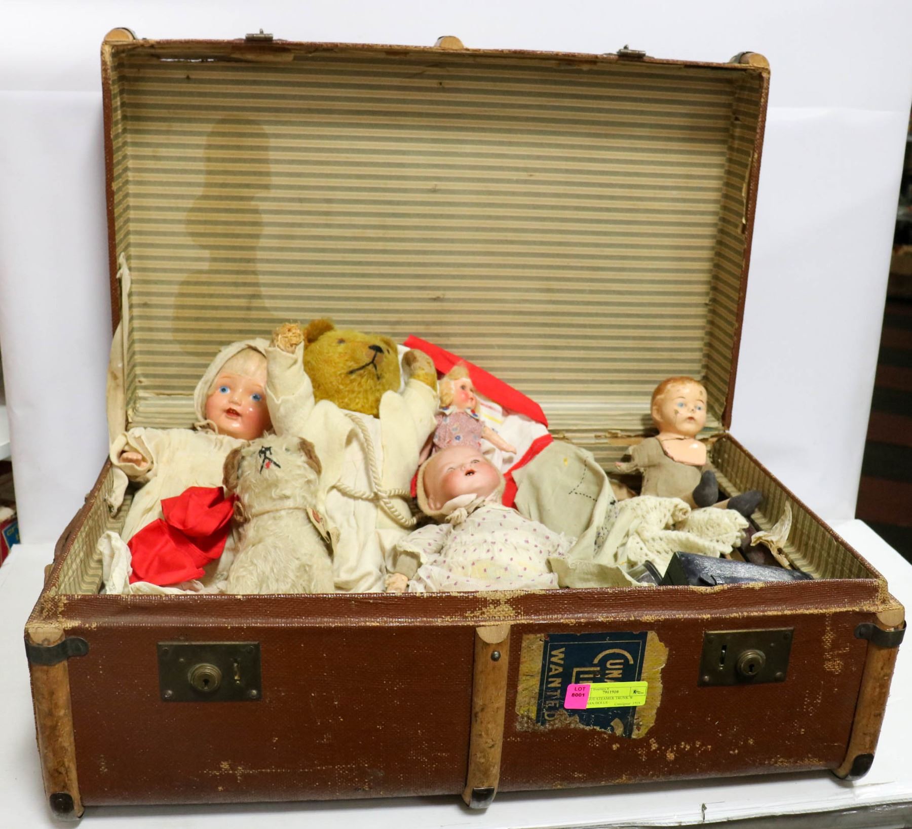 ANTIQUE STEAMER TRUNK W GERMAN DOLLS