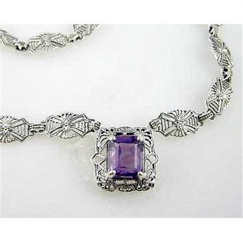 This Vintage Style necklace from my collection is an Authentic & Accurate copy of a Necklace from the 1930's - and THIS one is in Mint condition! The centerpiece of this outstanding STERLING Silver necklace is a rectangular AMETHYST = 10 CARATS!! The Amethyst is surrounded by exquisite filigree work and suspended from filigreed links 18" in length.