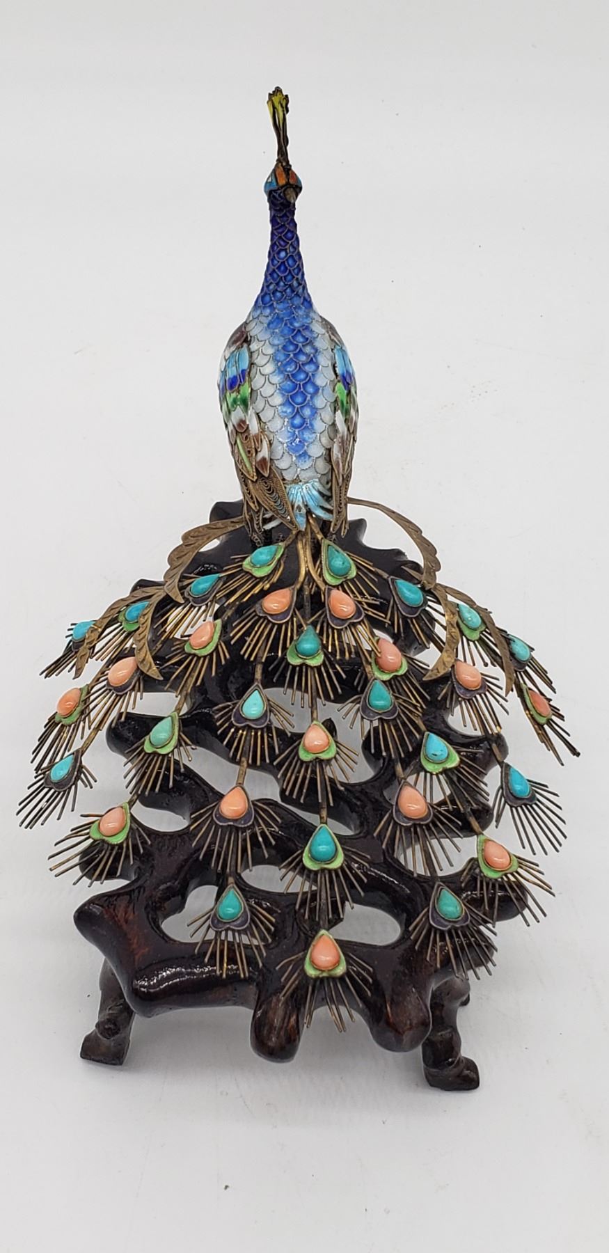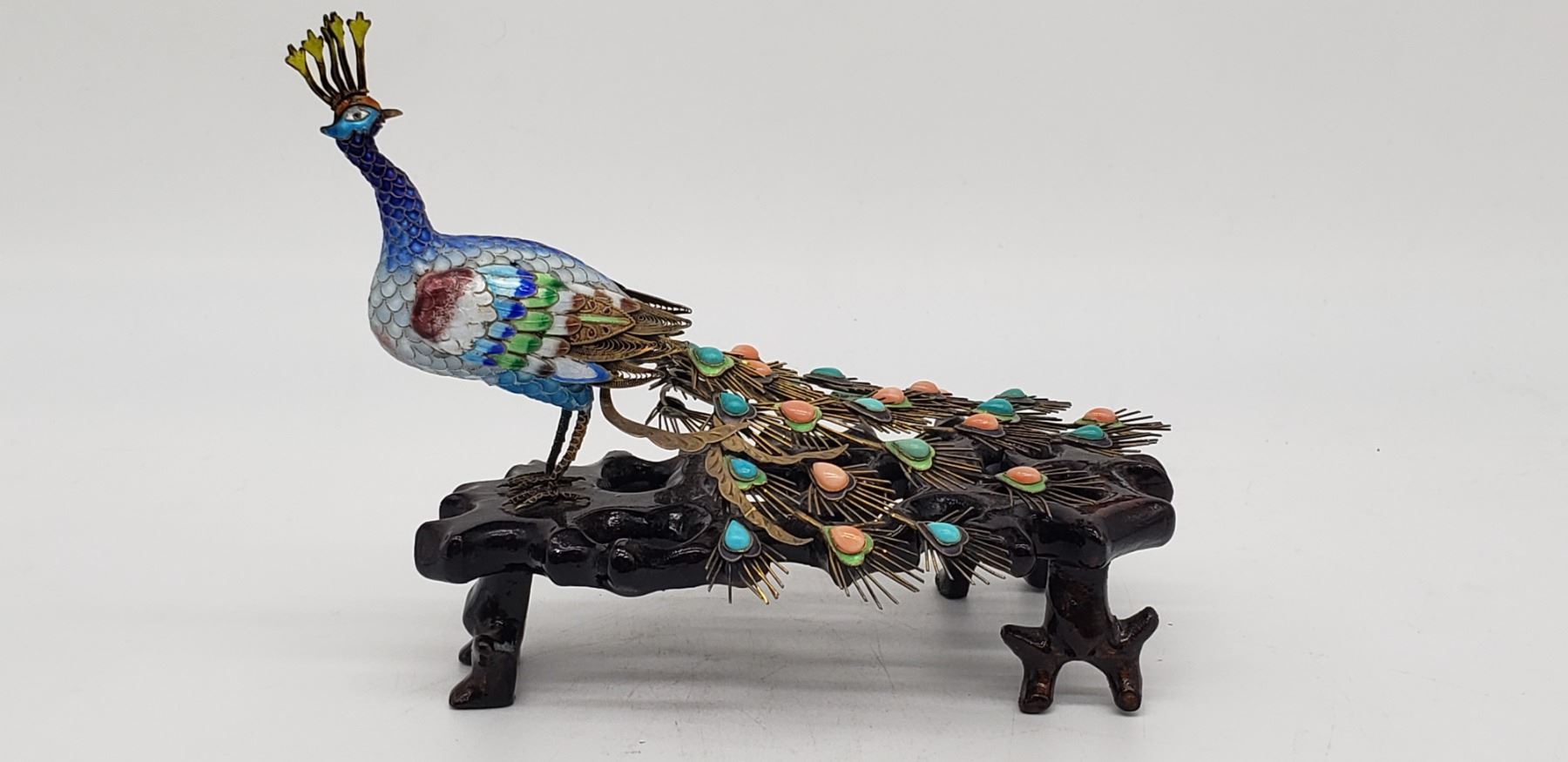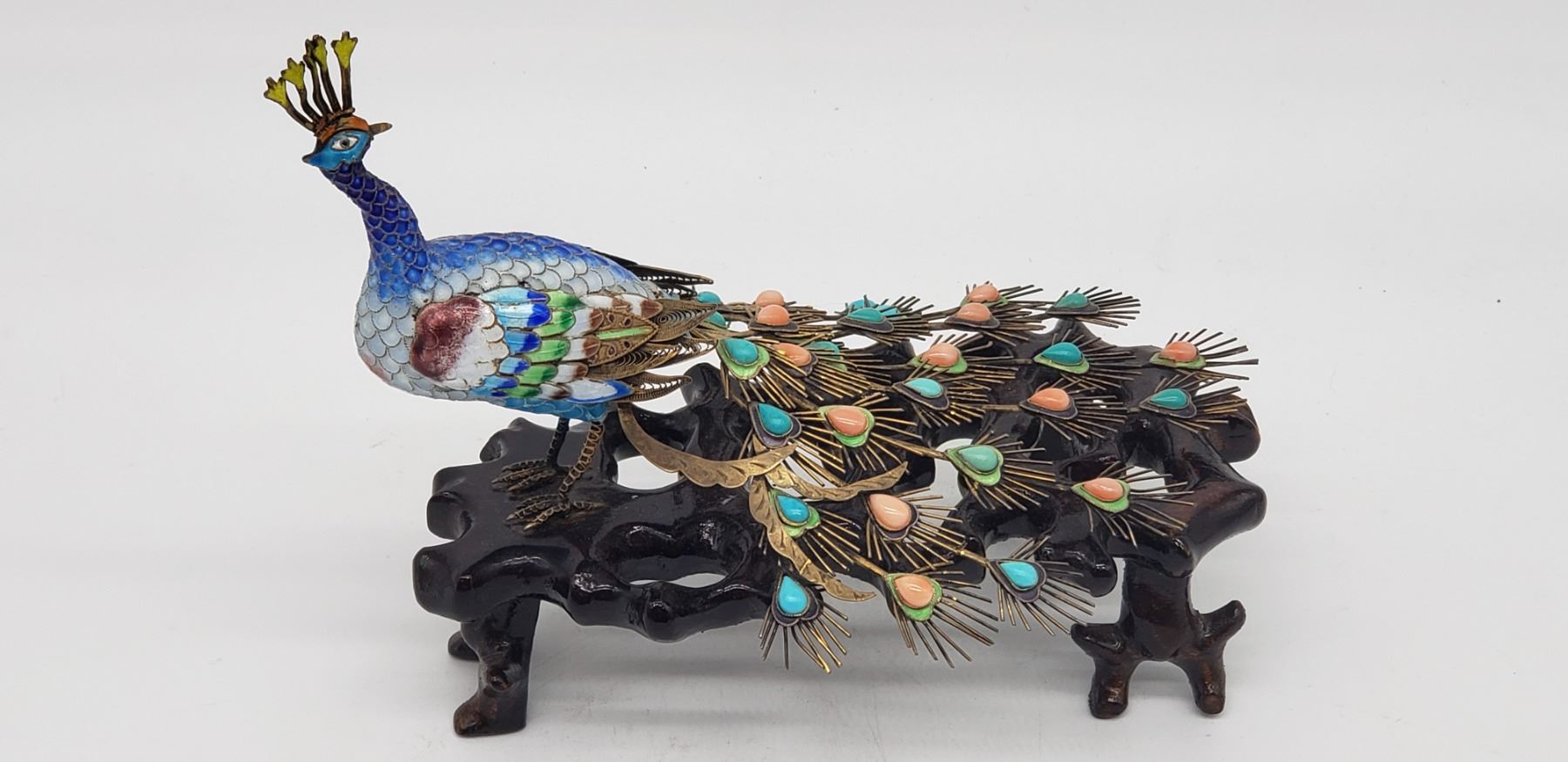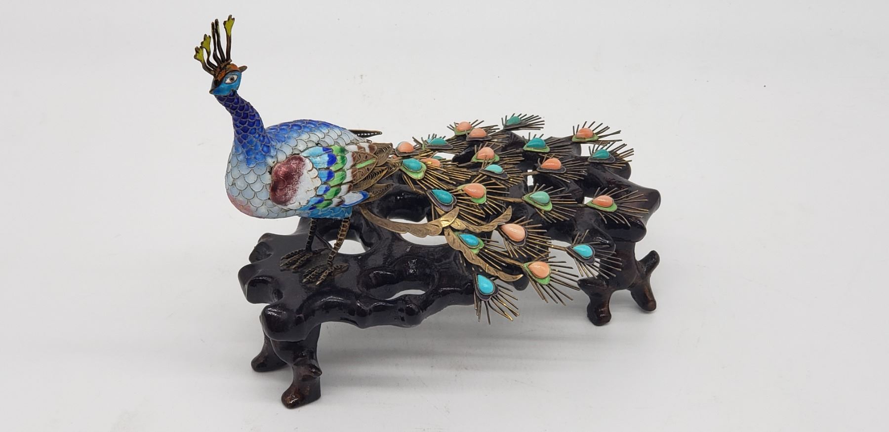 Antique Sterling Silver and Enamel Peacock Piece is 7" x 5" x 6" All items Located in in Hollywood Florida Warehouse For Shipping Call today for quote they have item numbers and Pak Mail is available for all your custom packaging and shipping needs. We can package, palletize, crate, insure and ship to any Domestic or International location. All packaging and shipping fees must be paid in full before shipment is released. On international shipments, consignee is responsible for all Duties, Taxes, Customs Clearance or any destination fees that apply. Please visit our website @ www.pakmail.com/us770 for contact information or to get a quote. (Let us know you are a winning bidder from the Puckett auction so we can correctly arrange pick up for your item