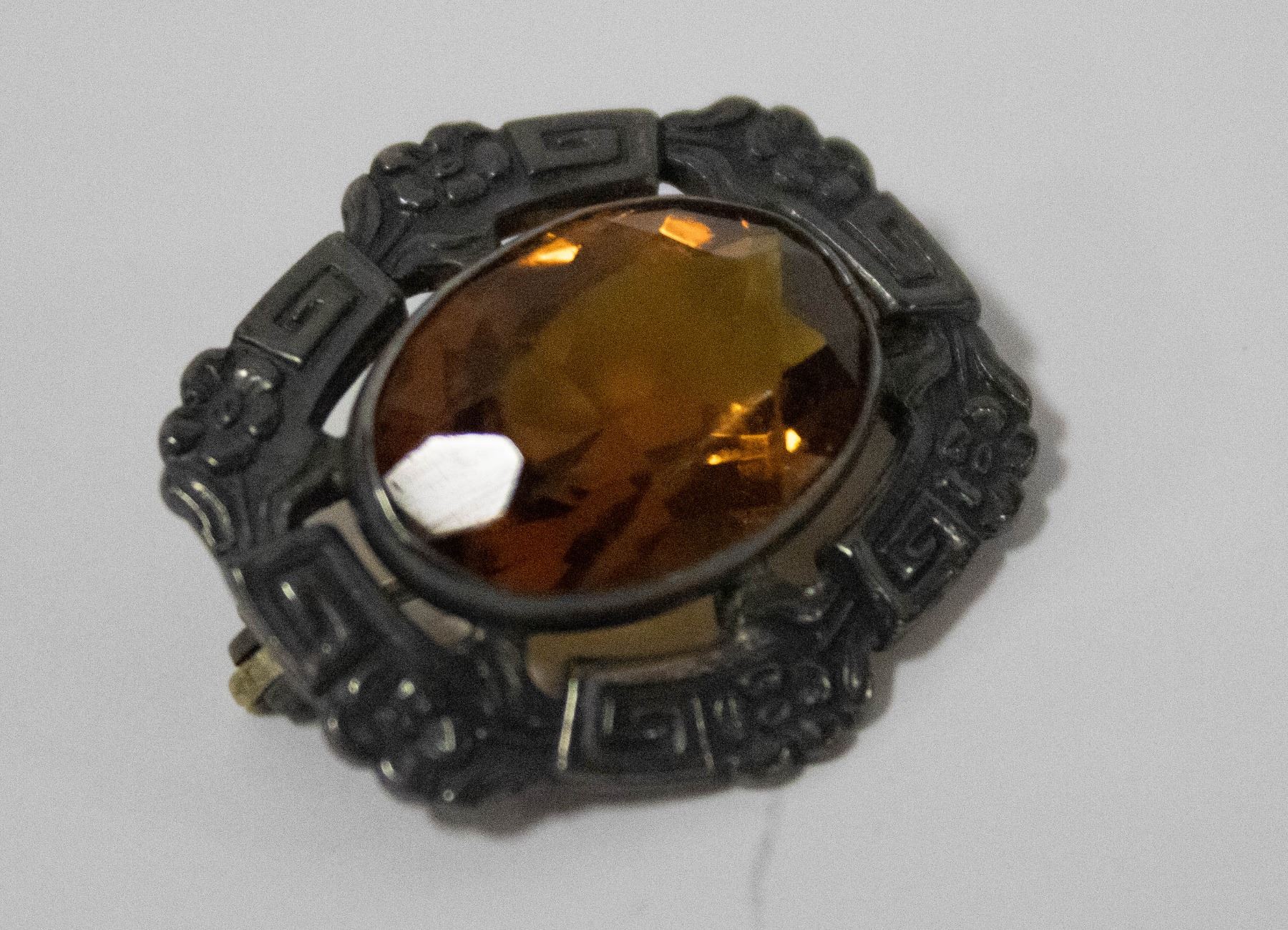ANTIQUE STERLING SILVER BROOCH WITH LARGE STONE