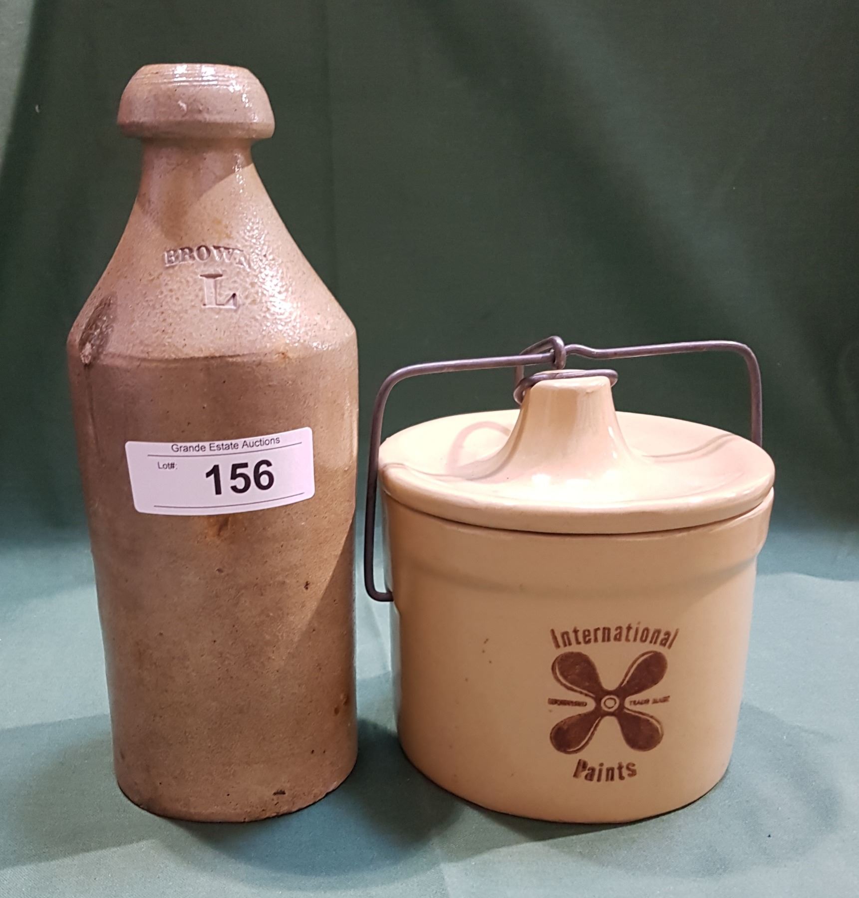 ANTIQUE STONEWARE INK BOTTLE & SMALL LIDDED CROCK