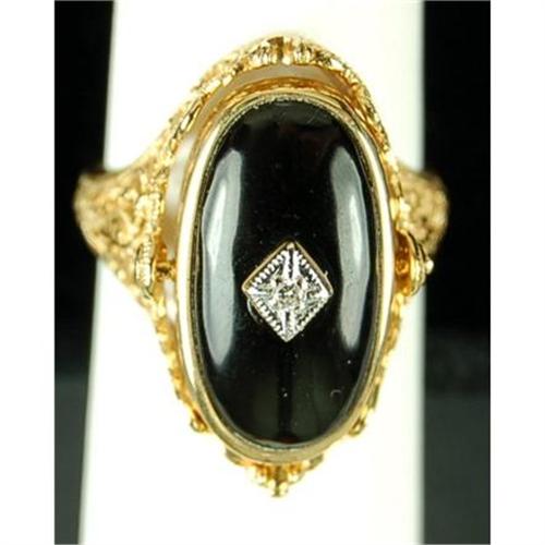 <tr><td>Title:ANTIQUE STYLE 14K GOLD FLIP RING BLACK ONYX</td></tr>