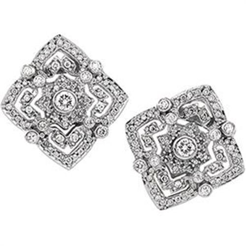 Antique Style 14k White Gold Diamond Earrings, each featuring a cluster of Diamonds set amidst exquisite openwork. The Diamonds are a beautiful 'SI' Clarity and 'H' Color, which means that they are 'white, bright AND sparkling'! The Diamond Total Weight = ONE CARAT!