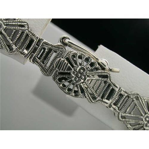 This Vintage Style bracelet from my collection is an Authentic & Accurate copy of a bracelet from the 1930's - and this one is in Mint condition! Vintage Style Sterling Silver bracelet featuring a 6 sided Genuine Amethyst with a Diamond set each side. The bracelet is 7" long and features exquisite filigreed links.