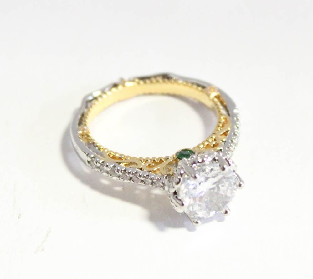 ANTIQUE STYLE CUBIC ZIRCONIA GEM 2 TONE RING, S7