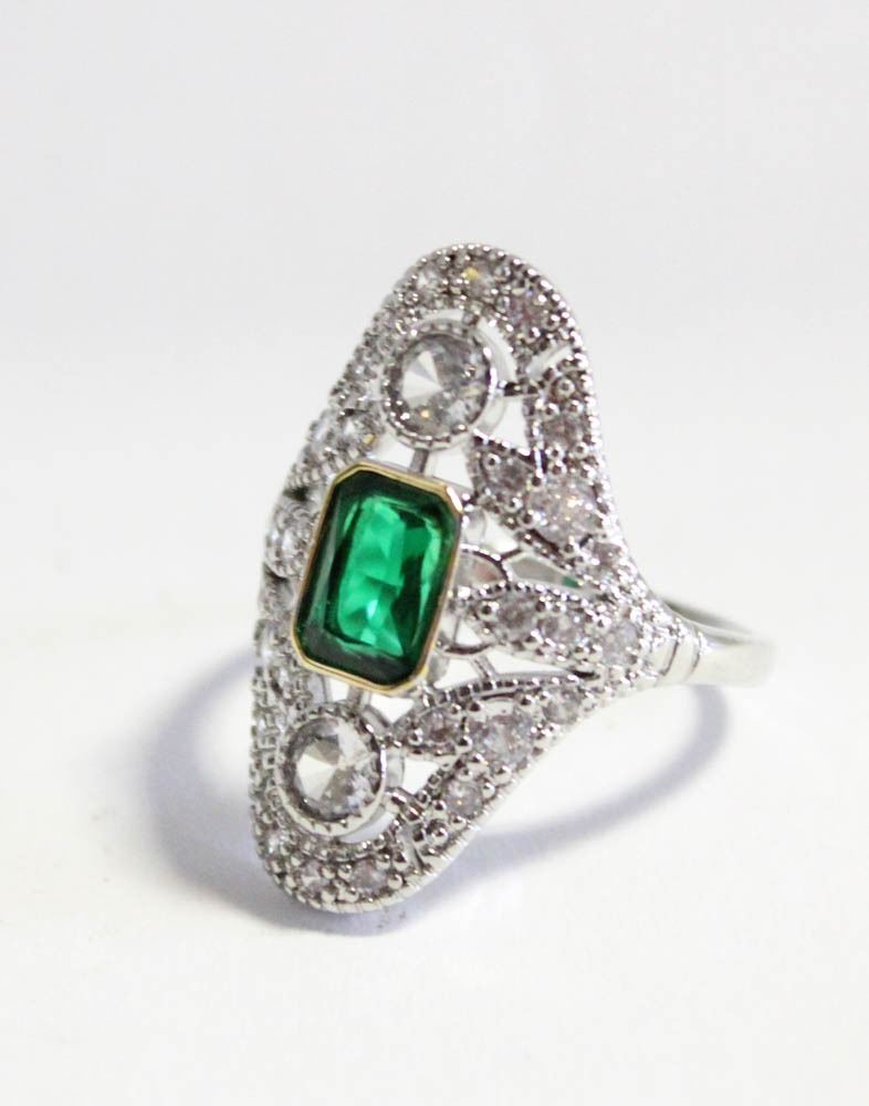 ANTIQUE STYLE CUBIC ZIRCONIA GEM RING, NEW SIZE 7