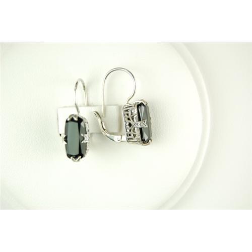 This pair of Antique Style Earrings is an Authentic and Accurate copy of a pair of Earrings from the 1930s but THIS pair is in MINT condition! The earrings are Solid STERLING Silver and each is set with a BLACK ONYX in a filigree basket setting. (The filigree basket settings are truly exquisite) The Black Onyx Total Weight = 6 Carats! The earrings have European earwire tops for pierced ears.