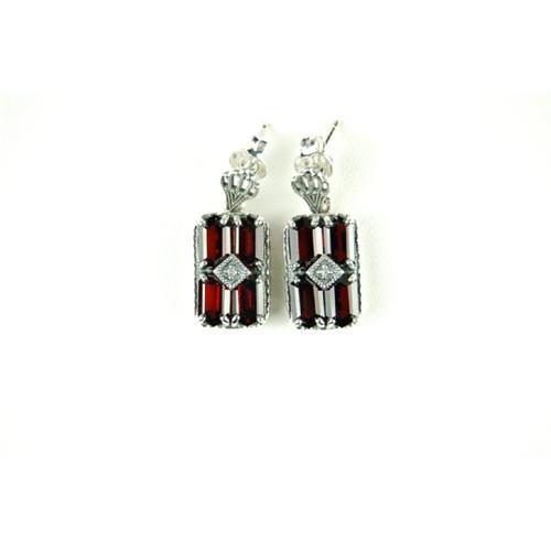 This pair of Antique Style Earrings is an Authentic and Accurate copy of a pair from the 1930s' and this pair is in MINT condition! They are STERLING SILVER and each Earring features 4 GARNETS and a DIAMOND surrounded by exquisite and authentic FILIGREE work. They have post style backs for pierced ears.