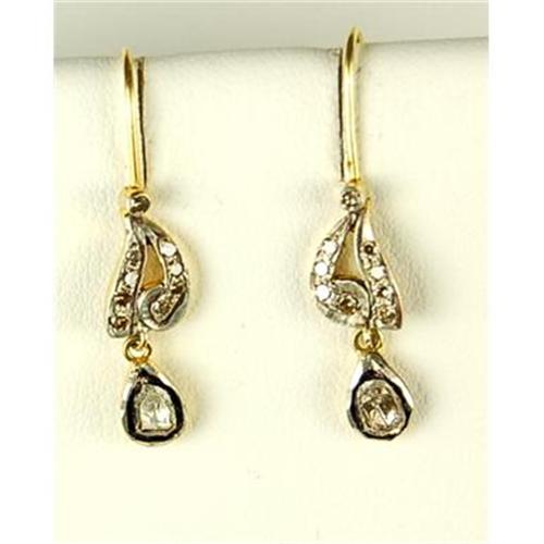 This pair of ANTIQUE Style Earrings are an AUTHENTIC and ACCURATE copy of a pair from the VICTORIAN ERA, 1880, and they ARE in MINT condition! They are 14k Gold with Silver and they are set with ROSE CUT DIAMONDS and they measure 1 1/4" from the top of the earwire to the bottom of the earring. The DIAMOND TOTAL WEIGHT = .50 CARATS!