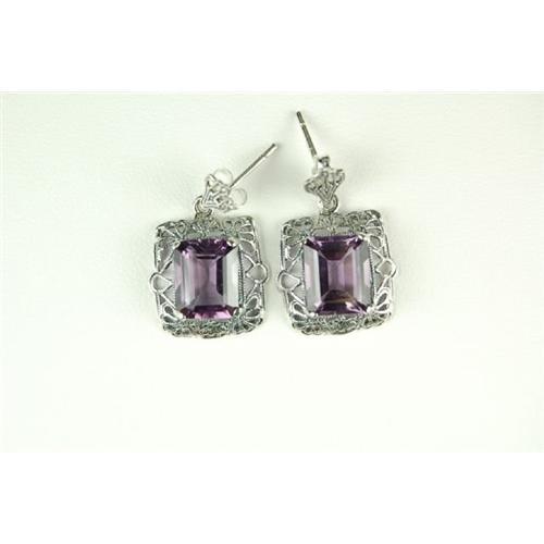 This pair of Antique Style Earrings are an Authentic and Accurate copy of a pair from the 1930s but THIS pair is in MINT condition! They are STERLING Silver and each Earrings features a rectangular AMETHYST surrounded by outstanding filigree work. The Amethyst Total Weight = SIX CARATS! The Earrings have post style backs for pierced ears.