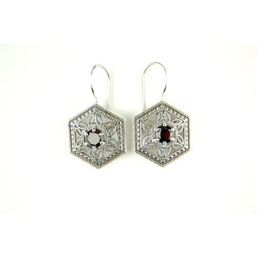 This pair of Antique Style Earrings is an Authentic and Accurate copy of a pair from the 1930's including the outstanding FILIGREE work. They are STERLING SILVER, and each earring features a Genuine GARNET in the center. The Earrings have European Earwire tops for pierced ears, and they are, of course, in MINT condition.