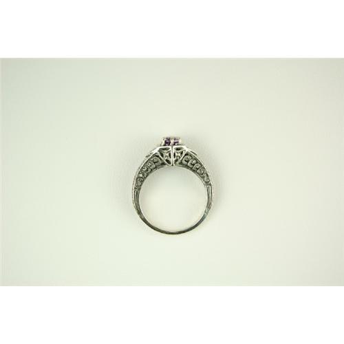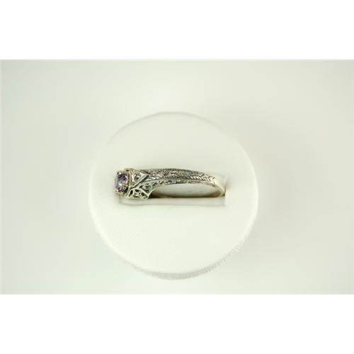 This ANTIQUE Style ring is an Authentic and Accurate copy of a ring from the 1930s' and THIS one is in MINT condition! It is a Sterling Silver ring and it features a Genuine AMETHYST = .20 CTS. which is surrounded by filigree work. This ring is in 'Mint' condition.