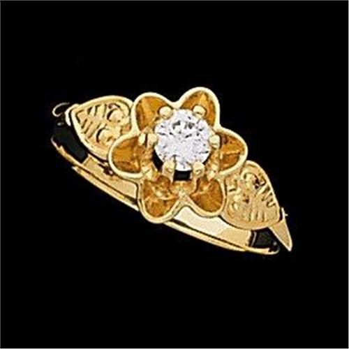 Antique Style 14k Yellow Gold Ring featuring a round Diamond = .10 Carats in a 'flower like' setting. This ring can be worn as an 'Antique Style Diamond Ring' - as well as - an 'Antique Diamond Engagement Ring'. The ring is a size 6 and I can easily resize it for you.