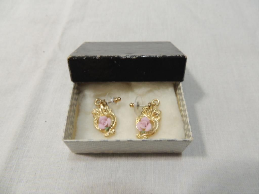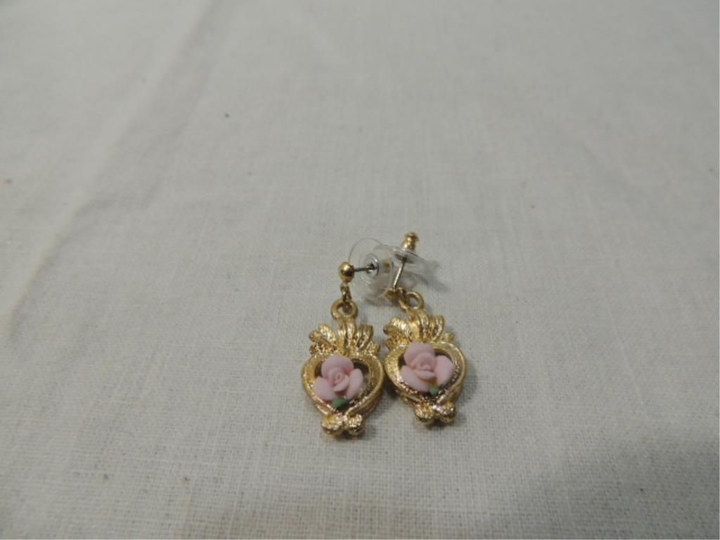 VINTAGE STYLE GOLD TONE DROP EARRINGS . HEART ROSE. SEE PICTURE FOR DETAILS