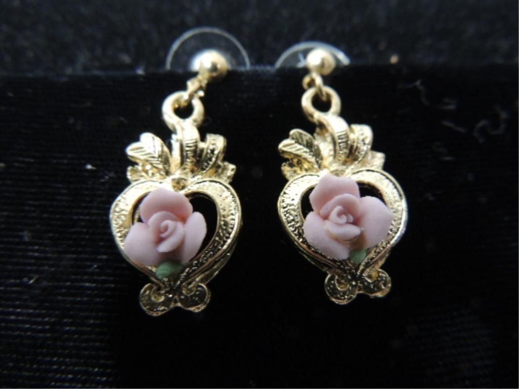 VINTAGE STYLE GOLD TONE DROP EARRINGS . HEART ROSE. SEE PICTURE FOR DETAILS
