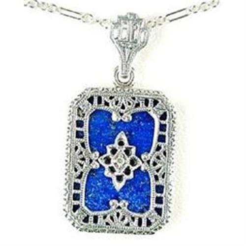 This Antique Style Necklace & Pendant is an Authentic & Accurate copy of a Necklace from 1920 - and THIS one is in Mint condition! It is a Solid Sterling Silver pendant featuring a fabulous LAPIS with a center Diamond. The LAPIS is surrounded by exquisite filigree work. It measures 7/8" x 5/8" and it hangs on a 18" chain.