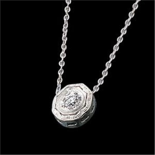 Antique Style a PLATINUM Necklace featuring a Platinum Slide set with a round Diamond= .18 Carats! The Diamond Pendant is suspended from a neck chain 18 inches in length. It is in Pristine condition.
