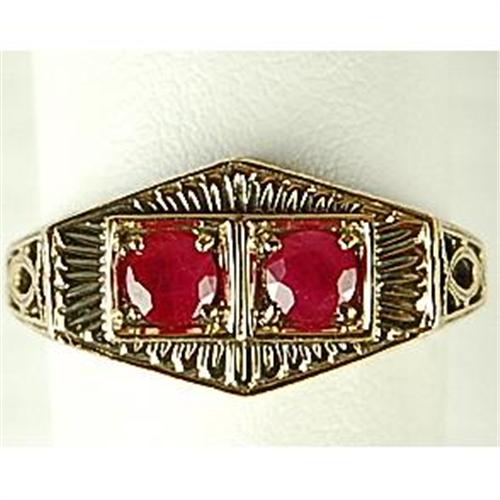This Antique Style ring is an Authentic and Accurate copy of a ring from the 1930's but THIS one is in MINT condition. It is 9K Gold and it features 2 round RUBYS set side by side and surrounded by beautiful filigree work. The Ruby Total Weight = .50 Carats. This ring is a Size 7 1/4 and I can resize it for you.
