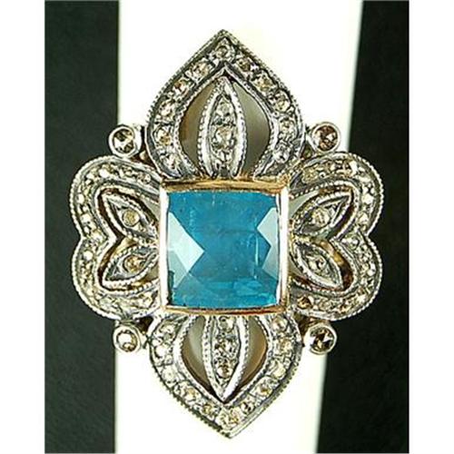 This ANTIQUE Style Victorian Ring is an Authentic and Accurate copy of a ring from the 1900's but THIS one is in MINT condition. It is 9K Gold and it features a rectangular AQUAMARINE = 2.70 CARATS! The Aquamarine is surrounded by DIAMONDS with a Total Weight = .65 CARATS! This ring is a size 6 1/2 and it can be resized.