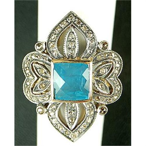 This ANTIQUE Style Victorian Ring is an Authentic and Accurate copy of a ring from the 1900's but THIS one is in MINT condition. It is 9K Gold and it features a rectangular AQUAMARINE = 3.85 CARATS! The Aquamarine is surrounded by DIAMONDS with a Total Weight = .65 CARATS! This ring is a size 7 1/2 and it can be resized.