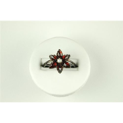This Antique Style ring is an Authentic and Accurate copy of a RING from the 1900's but this one is in MINT condition! It is VERMEIL (GOLD on Sterling) and it features magnificent BOHEMIAN GARNETS surrounding a Genuine Pearl .This ring measures 15mm x 13mm and is a size 8.