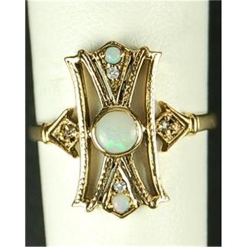 This ANTIQUE Victorian Style ring is an Authentic and Accurate copy of a ring from the 1900's but THIS one is in MINT condition. It is 9K Gold and it features 3 GENUINE OPALS and 4 DIAMONDS. The ring is a Size 6 3/4 and it can be resized both larger and smaller.