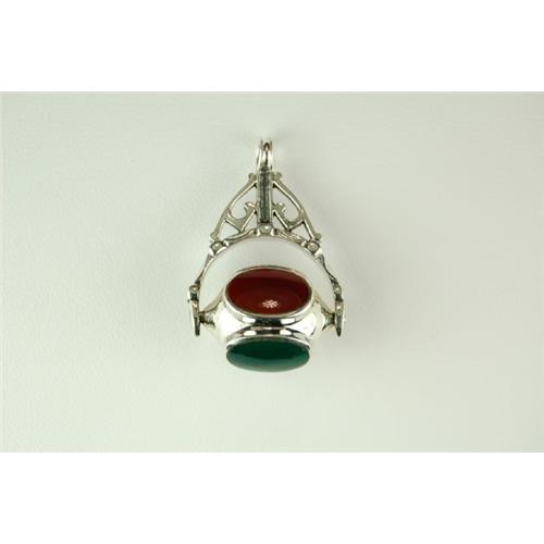 This Vintage Style Fob from my Collection features a Genuine Black Onyx, Green Onyx, Carnelian and Mother of Pearl! This Fob is SOLID STERLING Silver. It is an Authentic & Accurate copy of a Fob from the 1920's - and this one is in Mint condition! It measures 1 1/4" from top to bottom, and can be worn on a chain as a pendant - OR - used as a Fob with a watch.