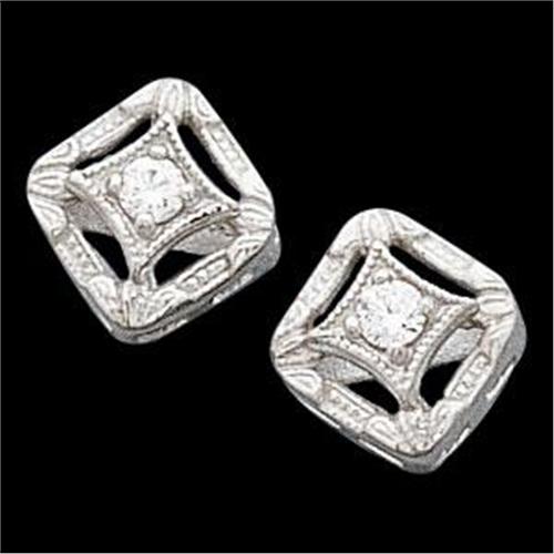 Antique Style 14k White Gold Earrings, each featuring a round Diamond surrounded by lovely openwork. The Diamond Total Weight = .10 Carats. The Earrings have stud style backs for pierced ears.