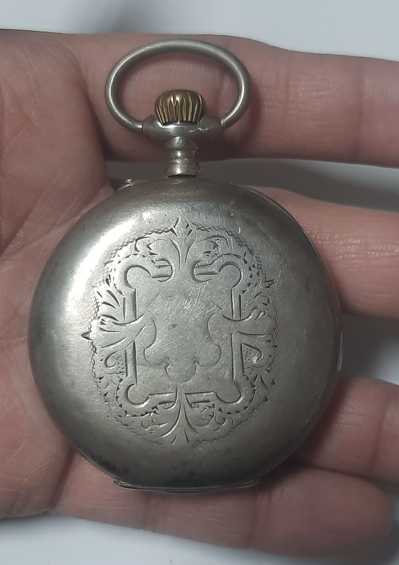 ANTIQUE SWISS POCKET WATCH, RUNS SILVER CASE