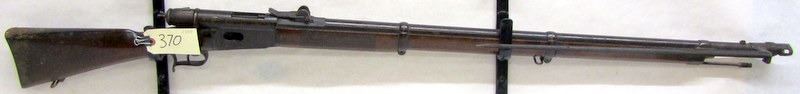 ANTIQUE, BOLT ACTION, .41 SWISS RIMFIRE, 33" BARREL, SN# 149418, WOOD HAS DINTS AND MARKS, BLUING IS BROWN, BORE IS PITTED WITH PROMINENT RIFLING, COMES WITH BAYONET