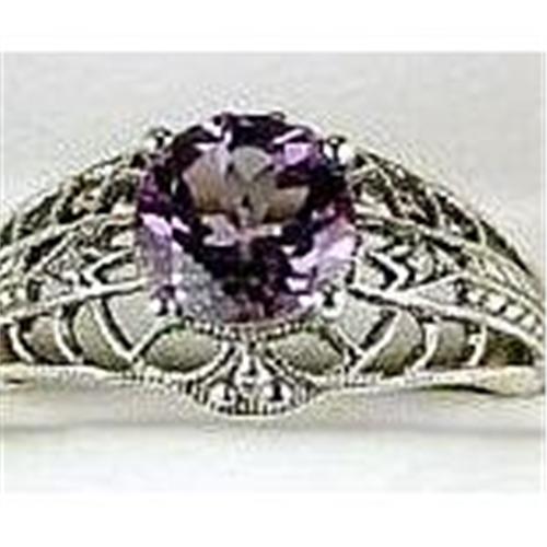 Antique Style Sterling Silver Filigree ring featuring a Genuine AMETHYST with a DIAMOND on ever side of the stone. This lovely ring is currently a size 7 and can be resized. <?b>